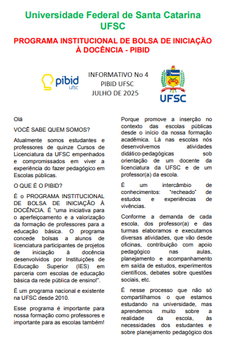 Está no ar o quarto informativo do PIBID UFSC – Edição 2024/2026!